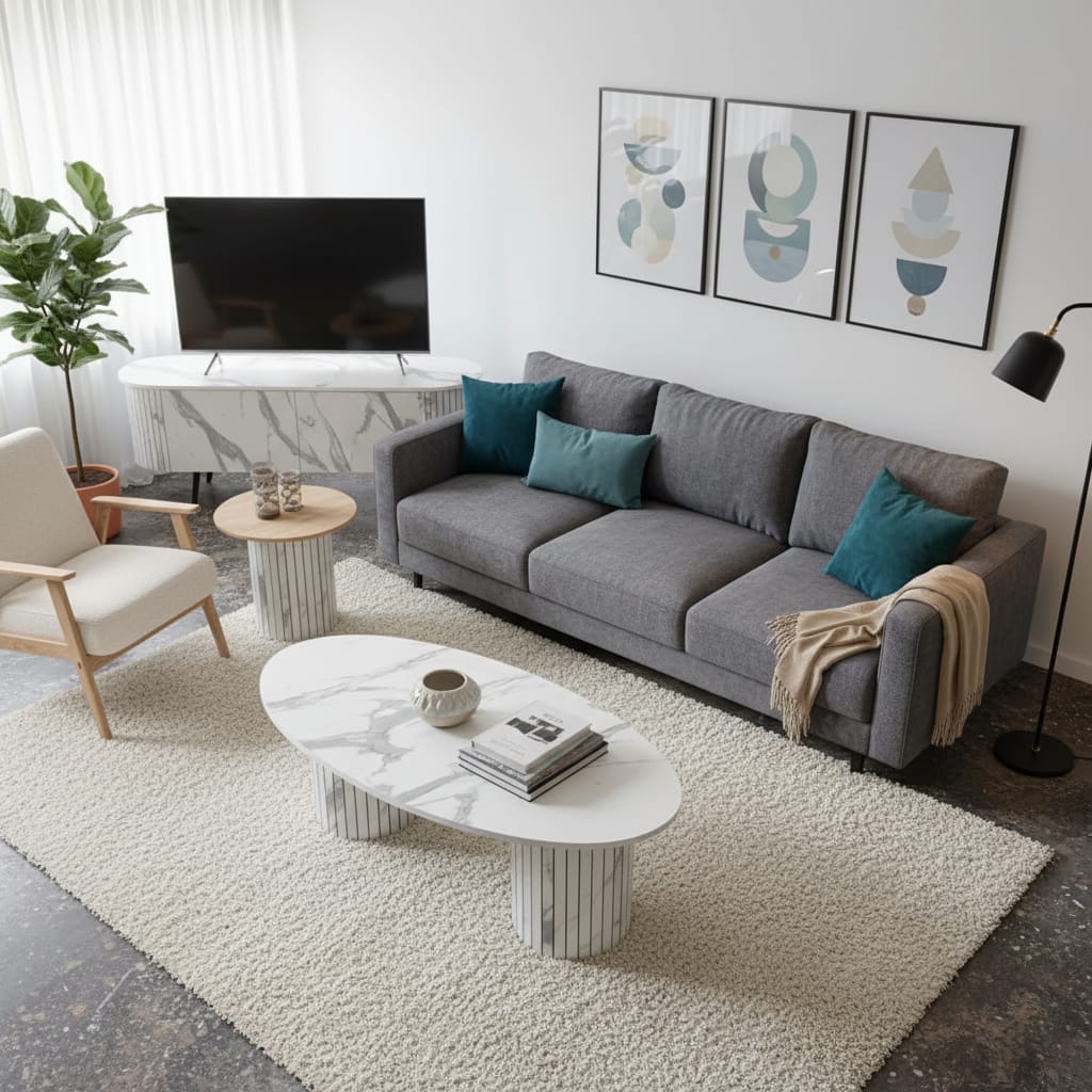 מזנון + שולחן דגם מילנו בדמוי שיש לבן